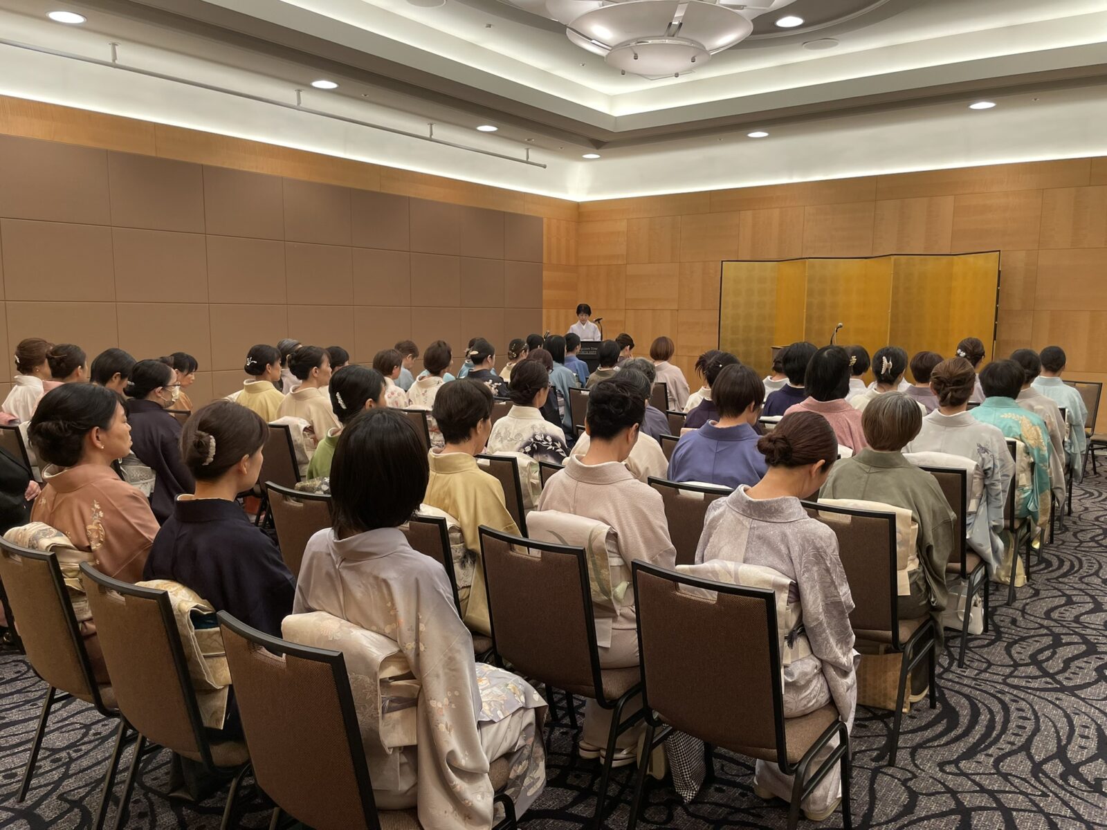 念願の資格を手にされた皆さまは、緊張の面持ちで会場の張りつめた空気に包まれていました。それでもこれまでの学びを胸に、これから講師・着付師として歩む日々への期待に心をふくらませている様子が伝わってまいりました。皆さまの今後のご活躍を心よりお祈り申し上げます。