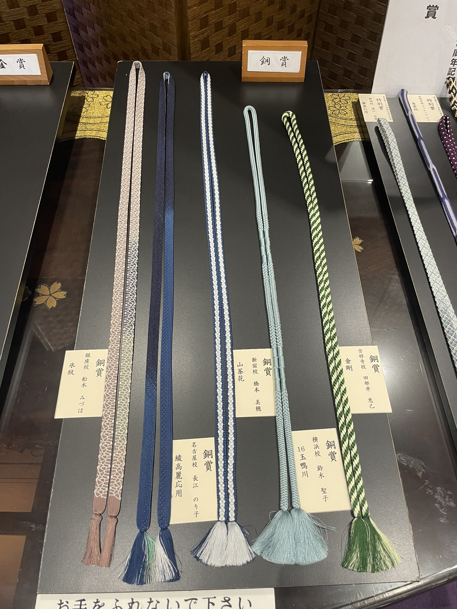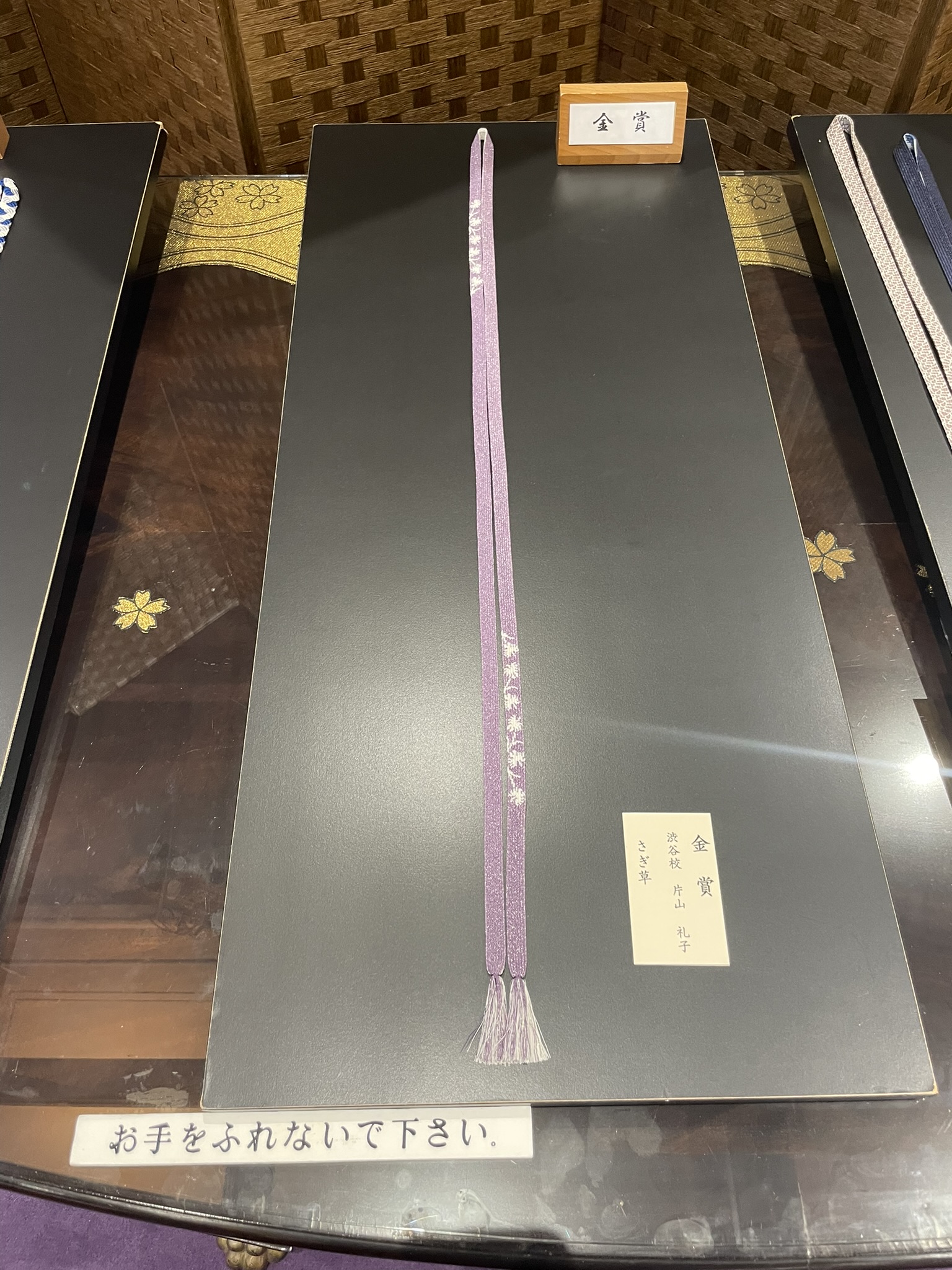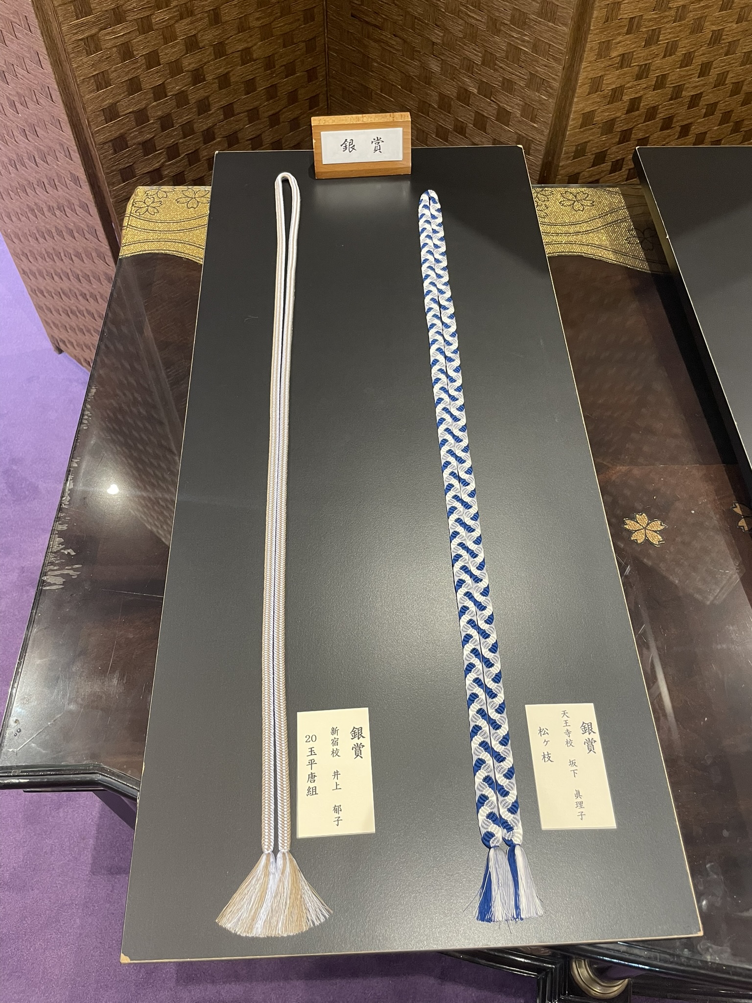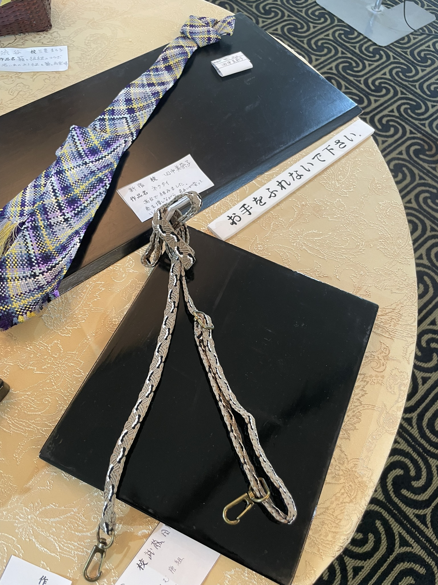 会場では受賞作品の展示も行われ、多くの方が近くでじっくりご覧になっていました。技術とデザインの豊かさを感じ、くみひもの魅力を感じる空間となりました。