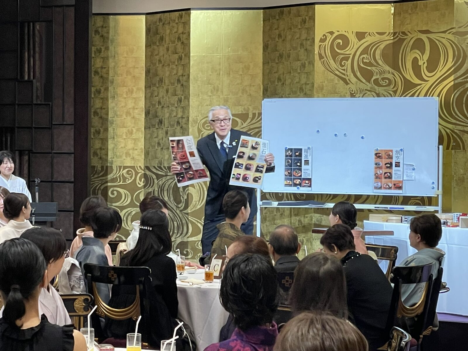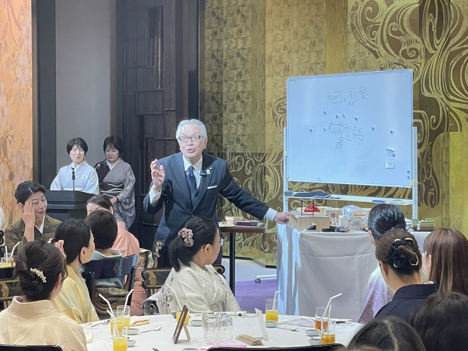 会席・懐石・割烹の違いからはじまり、「おもてなし」という言葉の本来の意味についてのお話もありました。「もてなす」とは“物を持って成し遂げる”という意味があり、真心を尽くすこと。そして「表なし」、裏表のない心で接すること。どちらも、日本人が大切にしてきた精神そのものだと感じました。