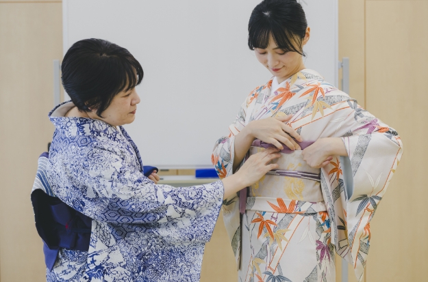 初心者の方でも安心。自分できものが着られるようになることを目指し、和のマナーや美しい所作も学べるカリキュラムです。
