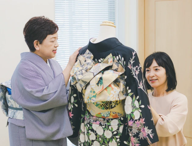人生の後半になり、ずっと働けて手に職をと思った時に、今度はきものを着付けて、お召しになった方の嬉しそうな笑顔を見たいと思いました。